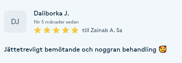 Hos oss kan du känna dig trygg och säker i alla behandlingar. Jag som kommer att ta hand om dig heter Zainab och är utbildad och certifierad i varje behandling jag utför.